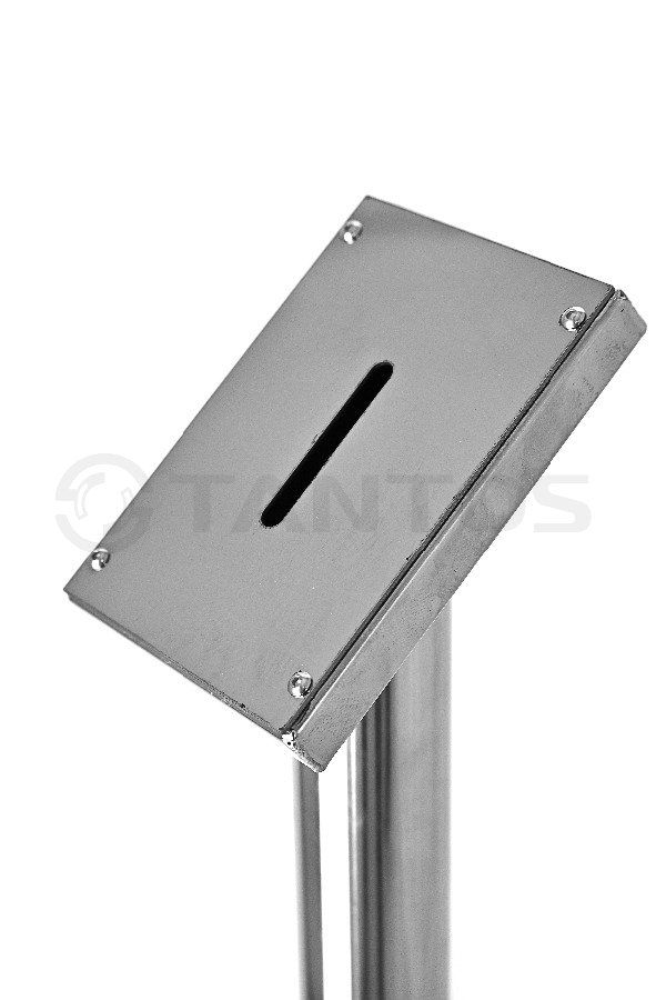 Стойка для считывателя с площадкой для его крепления и 6-ю отверстиями для муфт. Материал: шлифованная (до 1.01.2025 полированная) нержавеющая сталь AISI 201.