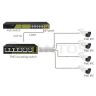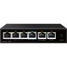 PoE коммутатор с питанием самого коммутатора по PoE (PoE in) 4x100 Мбит/с PoE порта (3 порта 802.3af/at, максимальная мощность PoE 30Вт на порт, 1 порт 802.3af/at/bt, максимальная мощность PoE 60Вт на порт) + 2x100 Мбит/с порта Uplink, один из которых используется для питания самого коммутатора, общий бюджет PoE 60 Вт, автоматический PoE watchdog грозозащита и защита от статического электричества, каскадное подключение до 4-х устройств, от -30°С до +60°С. Блок питания в комплект поставки не входит, использование внешнего блока питания в большинстве случаев не требуется.