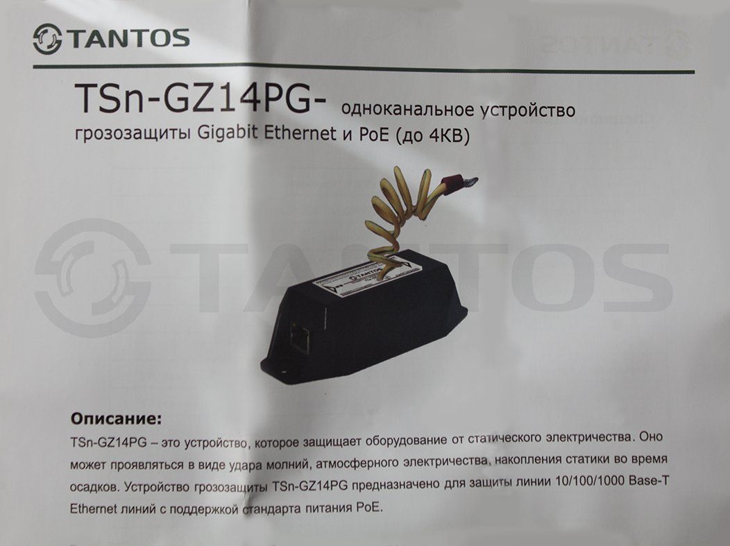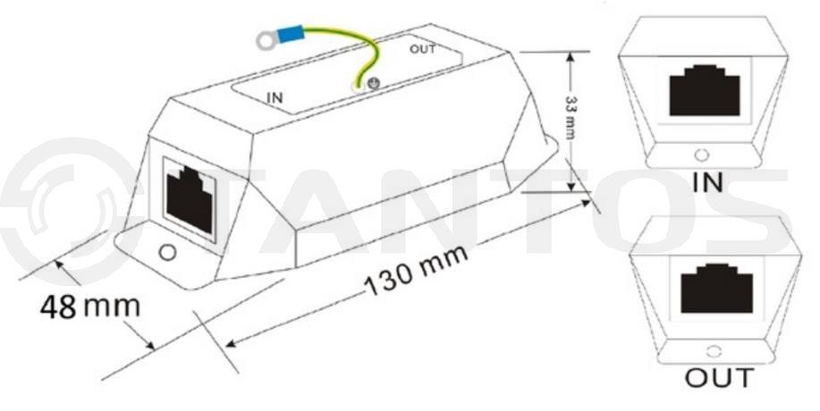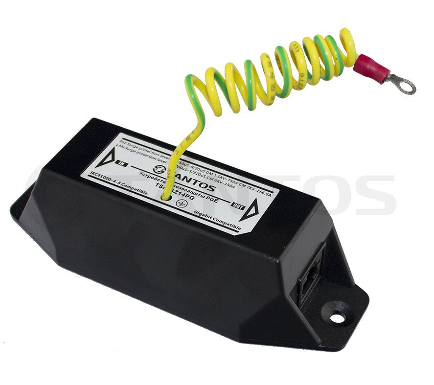 Устройство защиты оборудование от статического электричества, которое может проявляться в виде удара молний, атмосферного электричества, накопления статики во время осадков. Устройство предназначено для защиты линии 10/100/1000 Base-T Ethernet линий с поддержкой стандарта питания PoE.