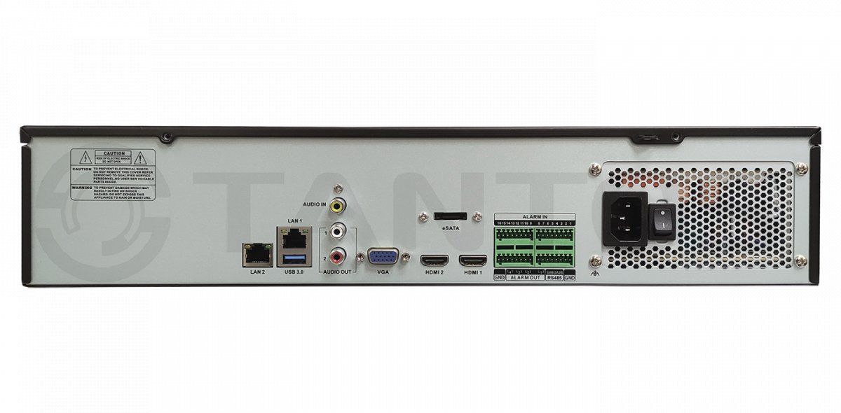 Сетевой 64 канальный H.265+/H.264+ регистратор для IP камер. Подключение и отображение 64 IP камер разрешением до 12 мегапикселей. Воспроизведение архива по 16 каналов для 2-х и 3-х мегапиксельных камер, по 12 каналов для 4-х мегапиксельных камер, по 9 каналов для 5-и мегапиксельных камер, по 6 каналов для 8-и мегапиксельных камер, по 4 канала для 12-и мегапиксельных камер. Поддержка облачного сервиса (IE, iPhone, Android). Одновременный просмотр, запись и работа с архивом. До 8 HDD по 8Тб каждый, eSATA. Два порта USB 2.0, порт USB 3.0, два порта 1000Mb Ethernet, 2 независимых HDMI (3840×2160) / 1хVGA (1920×1080), 16 входов / 4 выхода тревоги, вход/ 2 выхода звука RCA. ИК пульт, мышь в комплекте. Синхронизация с FTP, Dropbox. Запись непрерывная, по расписанию, вручную, по тревожным событиям, по событиям видеоаналитики. Подключение сторонних IP камер по ONVIF и RTSP. Установка в стойку 19"