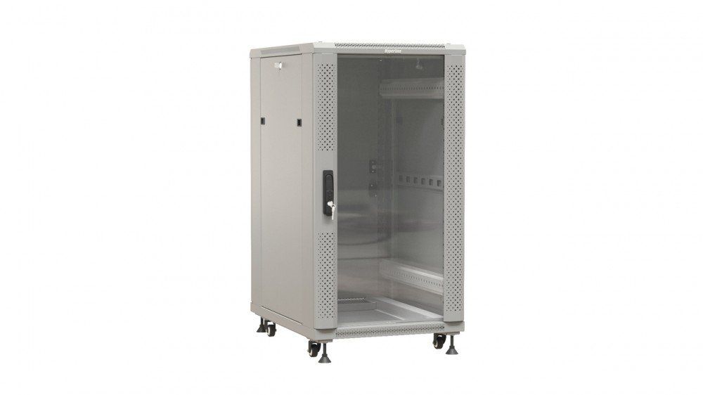 Шкаф напольный 19'', 27U, передняя стеклянная дверь со стальными перфорированными боковинами, задняя дверь сплошная, ручка с замком, допустимая статическая нагрузка 1000 кг, полезная глубина 710 мм, цвет серый, разобранный, 1388x600х800 мм