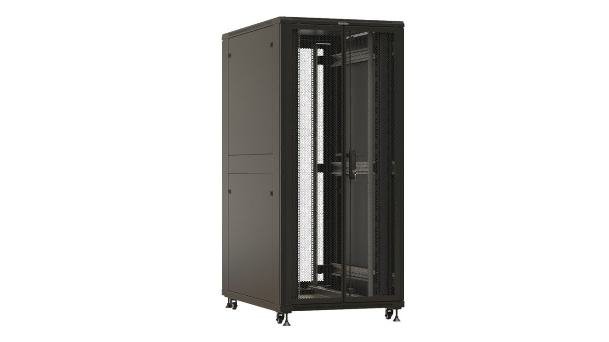 Шкаф телекоммуникационный 19", напольный, 37U, передняя и задняя распашные перфорированные двери (75%), ручка с замком, 2 вертикальных кабельных организатора, полезная глубина 910 мм, распределенная нагрузка 1000 кг, цвет черный, разобранный, 1833х800x1000 мм.