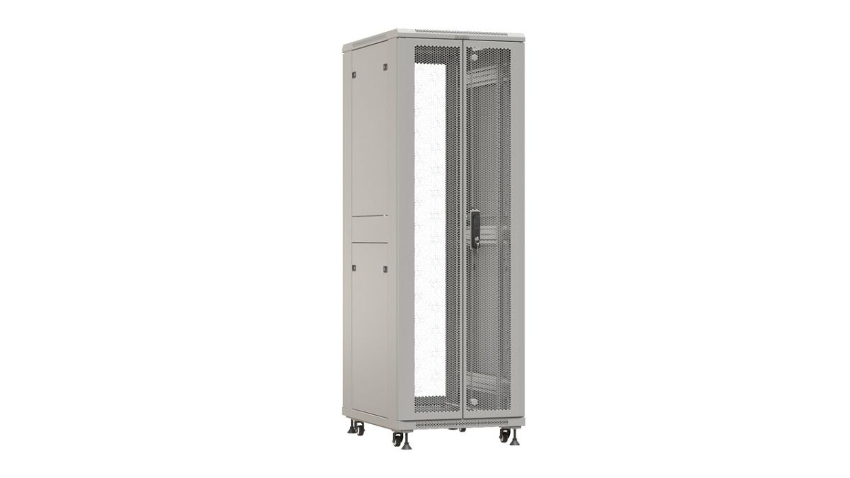 Шкаф напольный 19'', 42U, передняя и задняя распашные перфорированные двери (75%), ручка с замком, допустимая статическая нагрузка 1000 кг, полезная глубина 1110 мм, цвет серый, разобранный, 2055x600х1200 мм