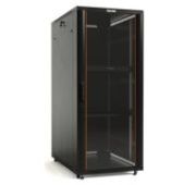 Шкаф напольный 19'', 42U, передняя и задняя распашные перфорированные двери (75%), ручка с замком, 2 вертикальных органайзера, допустимая статическая нагрузка 1000 кг, полезная глубина 1110 мм, цвет чёрный, разобранный, 2055x800х1200 мм.
