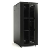 Шкаф напольный 19'', 18U, передняя и задняя распашные перфорированные двери (75%), ручка с замком, допустимая статическая нагрузка 800 кг, полезная глубина 910 мм, цвет черный, разобранный, 988x600х1000 мм. %Описание%
