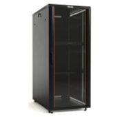 Шкаф напольный 19", 42U, 2055x800х450 мм (ВхШхГ), передняя стеклянная дверь со стальными перфорированными боковинами, задняя дверь сплошная, ручка с замком, крыша нового типа, цвет черный (RAL 9004) (разобранный).