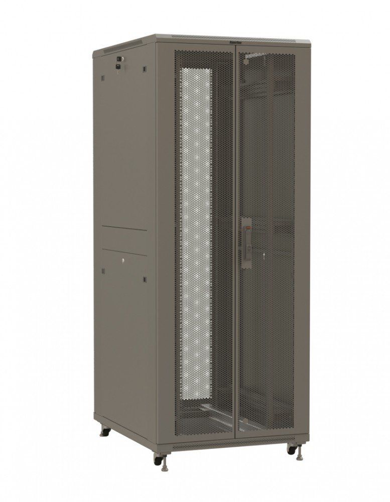 Шкаф напольный 19-дюймовый, 42U, 2055x800х1200 мм, передняя и задняя распашные перфорированные двери (75%), ручка с замком, допустимая статическая нагрузка 800кг, цвет серый (RAL 7035) (разобранный)