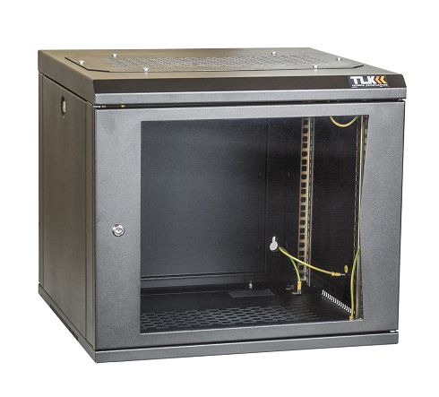 Настенный разборный шкаф TLK 19", 9U, стеклянная дверь, Ш600хВ436хГ600мм, 2 пары монтажных направляющих, черный
