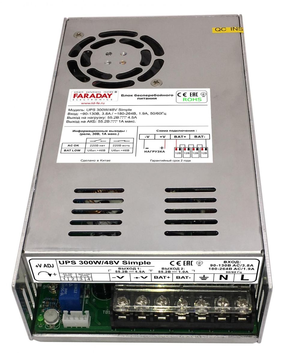 Резервированный источник питания с креплением на DIN рейку; U-вх.180…264 В, U-вых. 48…55.6 В, I-нагр.4.5 А; под четыре АКБ 12 В 7…17 А·ч; автоматическая защита от КЗ, перегрузки и низкого разряда АКБ; t-раб.-20…+70°C, 215х115х50 мм. В комплект не входят провода подключения к АКБ.