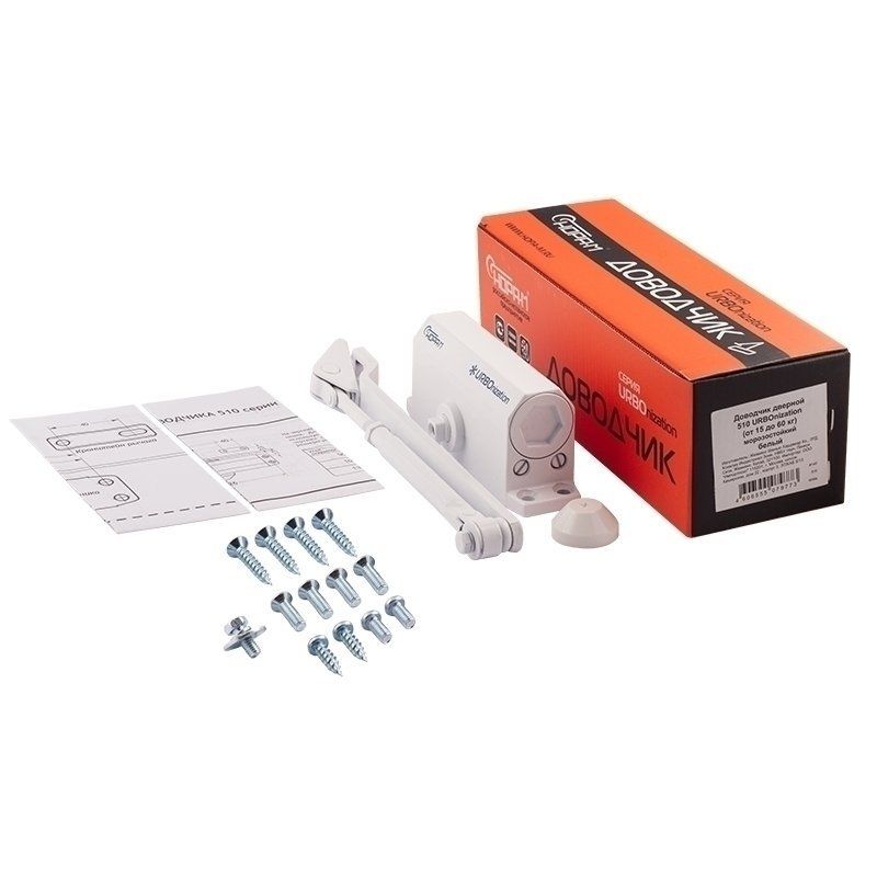 Дверной доводчик 510 предназначен для установки на межкомнатные и входные двери весом от 15 до 60 кг.