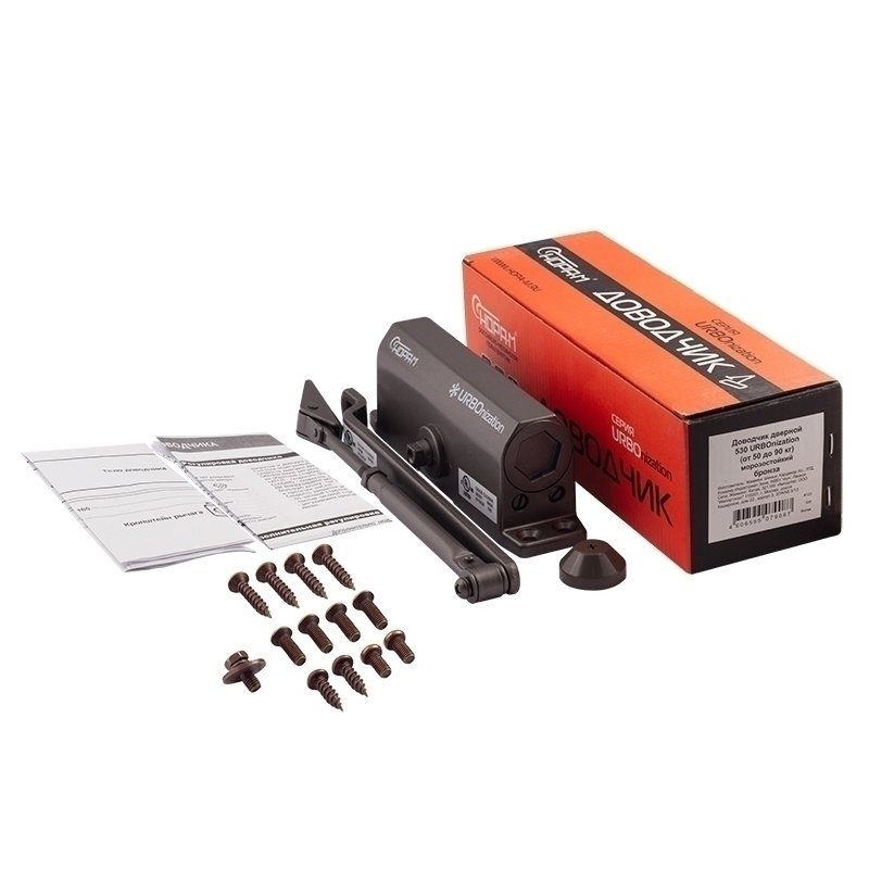 Дверной доводчик 530 предназначен для установки на межкомнатные и входные двери весом от 50 до 90 кг.