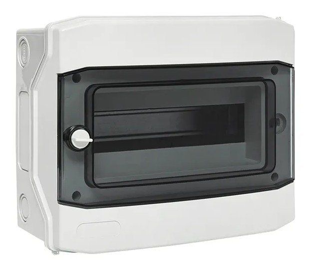 Щит модульный навесной пластиковый (стойкий к УФ) уличный на 12 модулей, 1 ряд, прозрачная матовая дверца; класс ударопрочности IK08, климат.исполнение УХЛ1, IP65; габ.размеры 259х319х144 мм. Цвет серый RAL7035. В комплекте DIN-рейка 1 шт., шины 10 N и 10 PE, замок ux65-lock приобретается отдельно