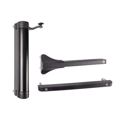 Доводчик для створок весом до 150 кг и шириной 150 см. Микро-регулировка скорости и финальной доводки, для створок с петлями на 90° и на 180°. Корпус из алюминия с порошковым покрытием, идеально подходит для использования на улице -30...+70 °С.