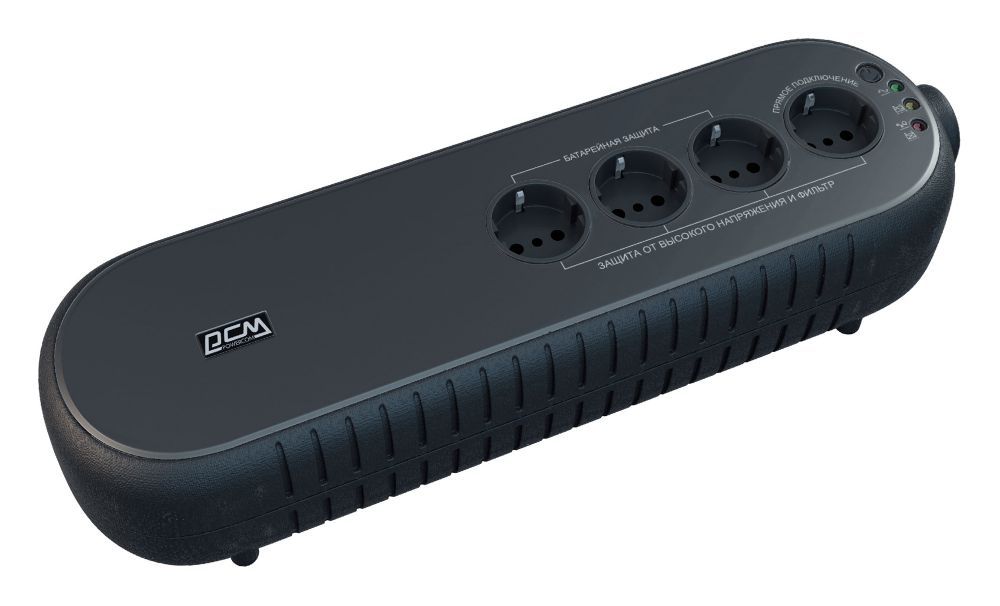 Источник бесперебойного питания Off-line, модифицированная синусоида; P-нагр.850 ВА/425 Вт; U-вх.220 В; 1 АКБ 12В, 7.2Ач; Защита от перегрузки и КЗ; Защита RJ-11/RJ-45; USB-порт; Розетка Schuko x 4 шт; t-раб.0…+40°C, 120х410х85 мм. Время автономной работы от батарей при нагрузке 100 Вт 24 мин.