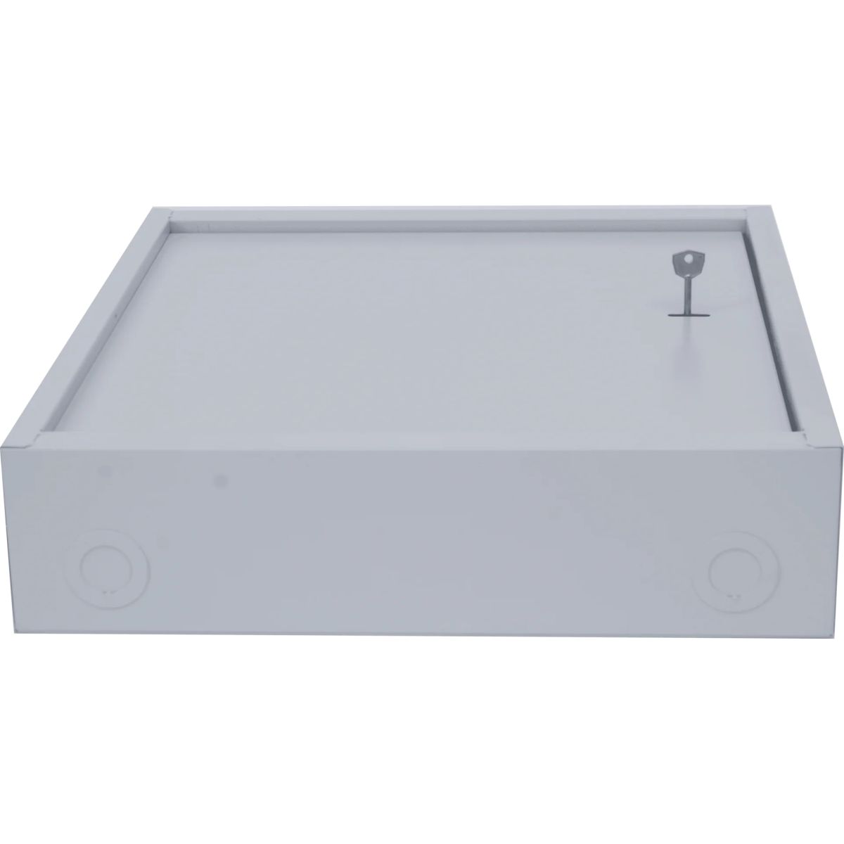 Шкаф имеет цельнометаллическую сварную конструкцию, выполнен из стали толщиной 1 мм. Крепление к стене анкерными болтами через сквозные отверстия в задней стенке шкафа. Дверь шкафа имеет рамную конструкцию и утоплена на 10мм, фиксируется замком, стойким к подбору ключей и механическим повреждениям. . Внутри установлен болт заземления. Порошково-полимерная окраска RAL7035.