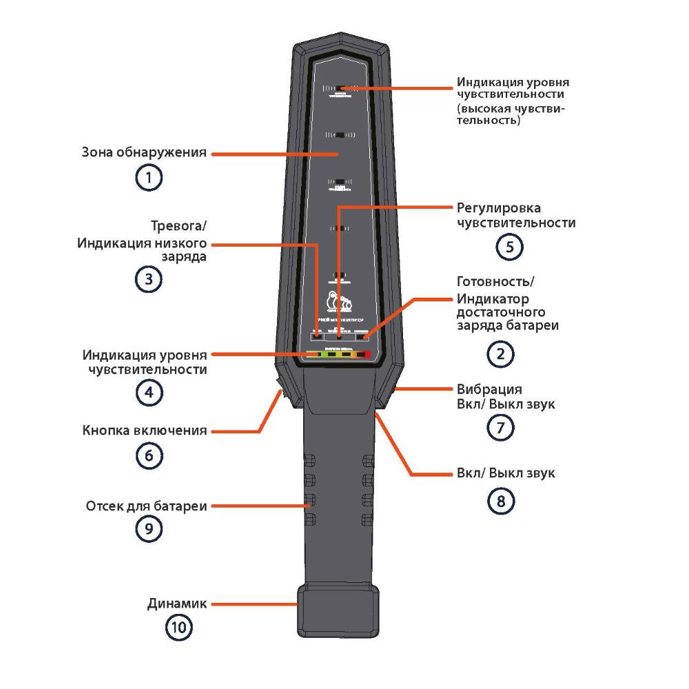 Предлагаемая модель отличается высокой чувствительность. Также возможен выбор режима чувствительности. Прибор отличается большой сканирующей поверхностью. Ударопрочный корпус обеспечивает стойкость аппарата к механическим воздействиям. Имеется кнопка оперативного снижения чувствительности.