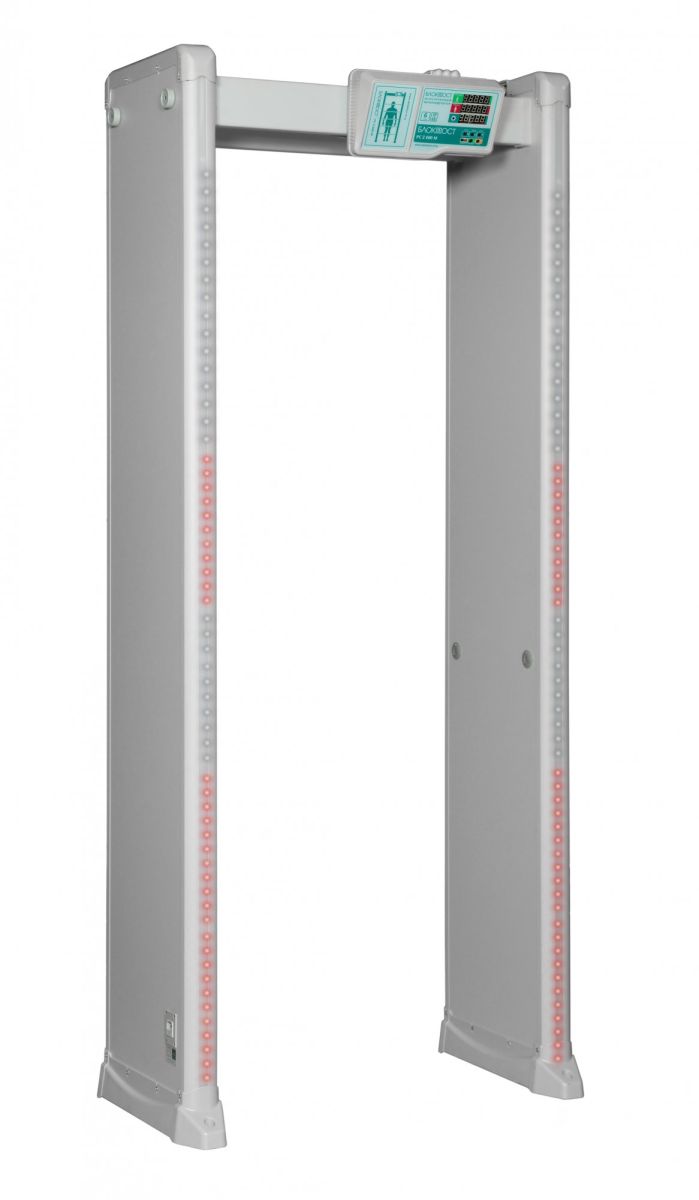 6-зонный арочный металлодетектор. Подсчет количества проходящих людей (на вход и на выход), высокая степень безопасности, универсальная применимость, высокая чувствительность, широкий диапазон детектирования, нечувствительность к помехам, 2200х930х480 мм.