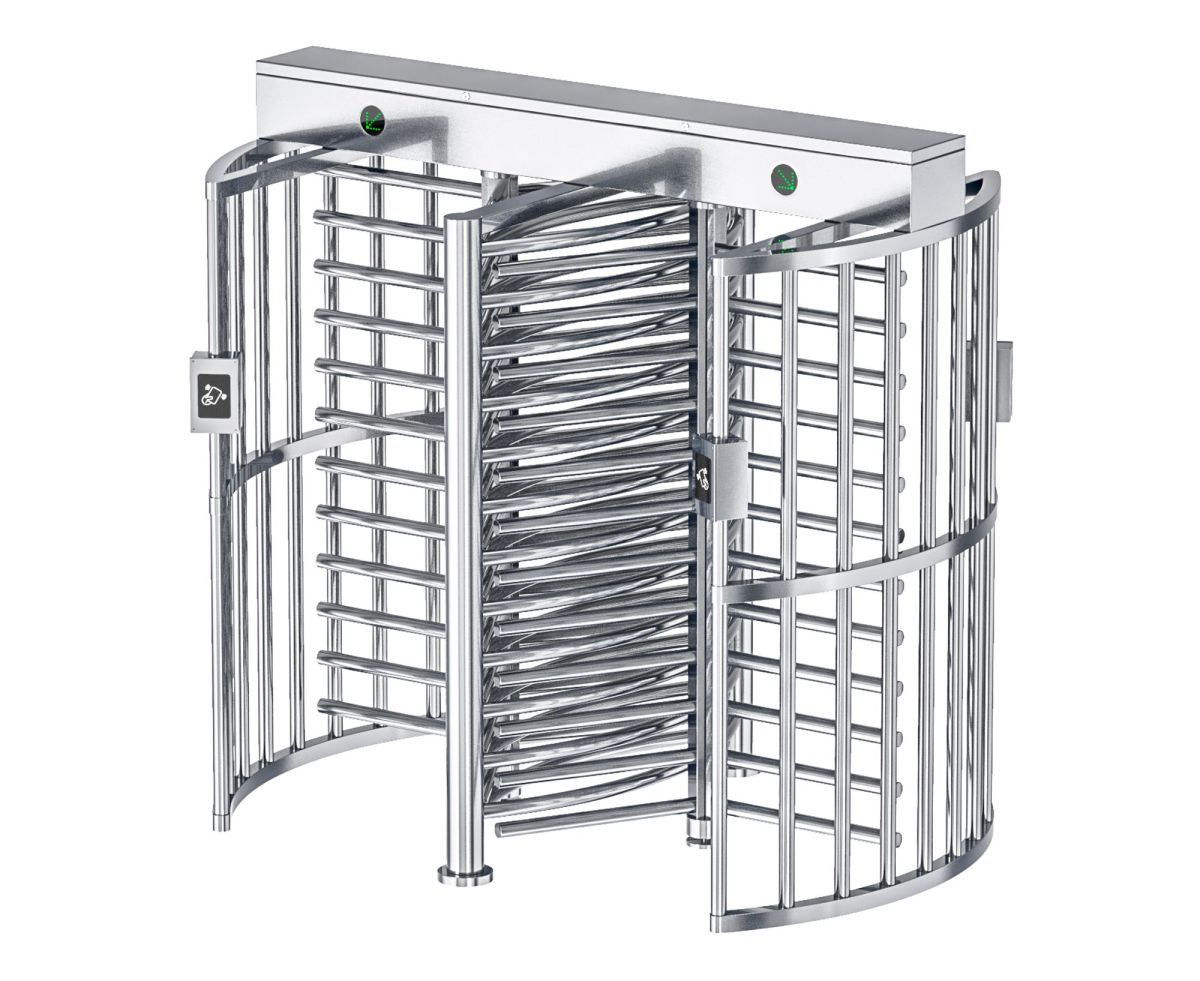 Полноростовой двухпроходной роторный турникет, ширина планки 550мм, встроенные считыватели Em-marine/Hid, Wiegand 26, всепогодное исполнение, "сухие контакты на плате управления", 220 В, 50 Гц, IP54, -25 - +60°C. ПДУ и ИК-пульт в комплекте. Материал корпуса - нержавеющая сталь, 2100х1500х2310 мм, 240 кг.
