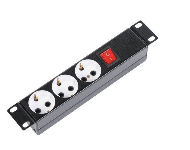 Блок силовых розеток для шкафа 10",без шнура с выключателем, 3 EURO розетки, 10А.