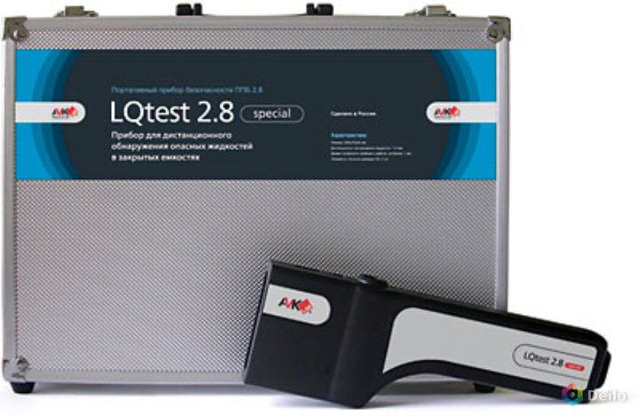 Прибор "LQtest" (Портативный прибор безопасности ППБ 2.8.) предназначен для проверки содержимого различных сосудов, таких как пластиковые и стеклянные бутылки, картонные пакеты и другие неметаллические емкости. Он может быть использован охранными службами и органами правопорядка в аэропортах, контрольно-пропускных пунктах, местах массового скопления людей (стадионы, дискотеки) и т.д. Устройство позволяет, не нарушая герметичность сосуда, отличать такие вещества, как бензин, зажигательные смеси, ацетон, нитроглицерин, различные спирты, эфиры и другие опасные жидкости от воды, безалкогольных и алкогольных напитков (включая крепкие), молочных продуктов и т.п.