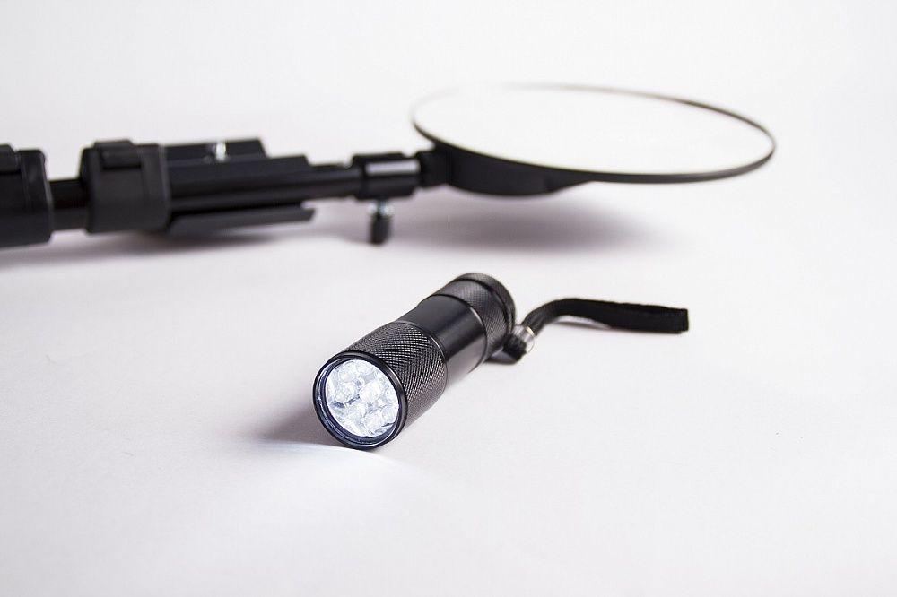 Яркий светодиодный фонарь, которым оборудовано досмотровое зеркало ДУ-101, надежно закреплен на кронштейне. Чтобы обеспечить максимальную функциональность прибора, производитель предусмотрел возможность поворота фонаря под углом до 45°. Работает фонарик от обычных батареек ААА («мизинчиковых»).