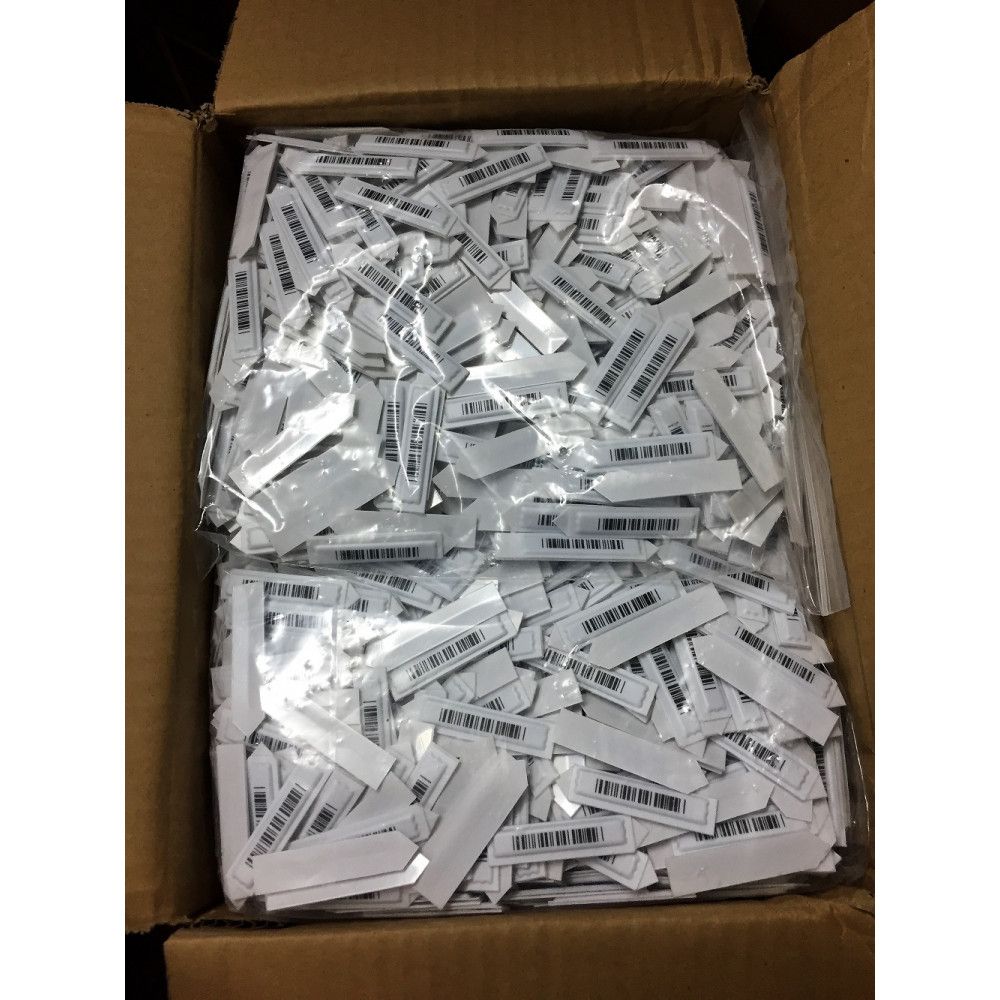 Этикетка предназначено для вставки во внутрь коробки. Этот способ защиты товара максимально эффективен, т.к. этикетку не видно, и ее не возможно повредить или отклеить. Этикетка наклеена на заостренную пластиковую площадку, позволяющая без доп. средств вкладывать её в коробку с минимальным повреждением пластиковой упаковочной пленки.