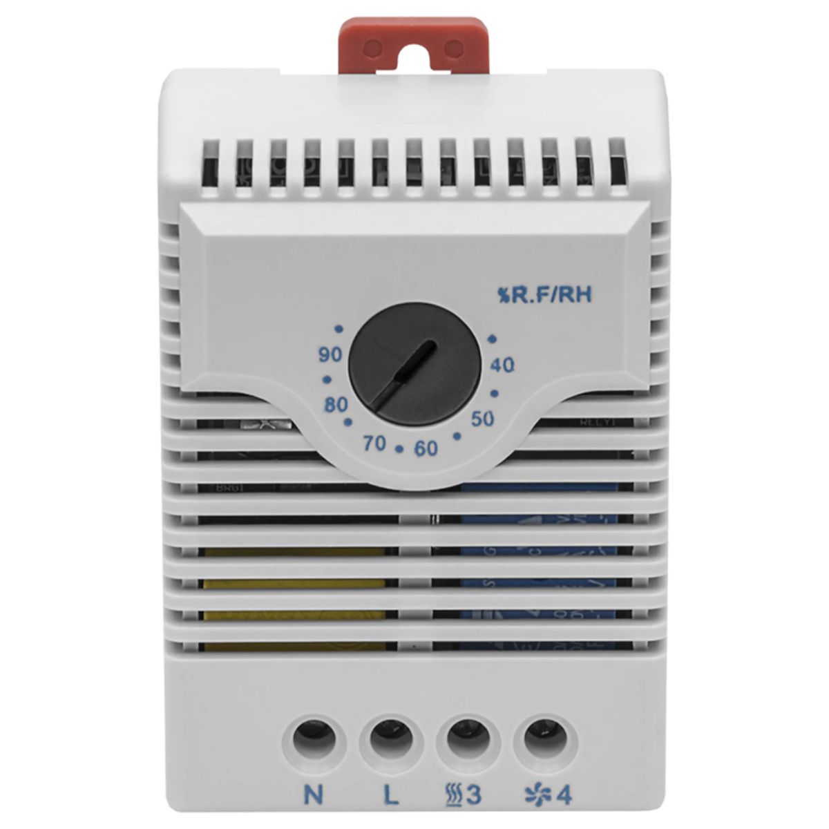 Электромеханический гигростат предназначен для управления нагревом корпуса, так чтобы точка росы поднималась при превышении критической относительной влажности 65%. Таким образом эффективно предотвращается конденсат и коррозия в корпусах с электрическими электронными компонентами.