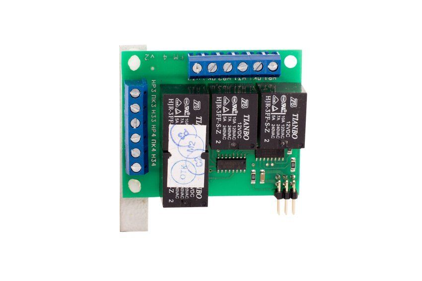 Релейный модуль на 4 мощных управляющих реле (250В, 7А) для установки в ППКОП модульного типа "Гранд Магистр-2-30" и блоки управления "Гранд Магистр БУ ПУ"; каждое реле может быть запрограммировано на сработку от любого количества ШС одного типа: охранного по схеме "И" или пожарного по схеме "ИЛИ". Логика работы реле соответствует логике работы реле ПЦН соответствующего ШС.