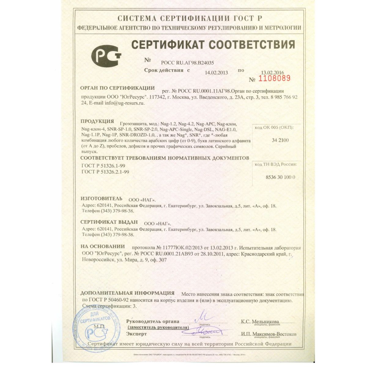 Грозозащита SNR-SP-1.0 предназначена для установки у абонента.