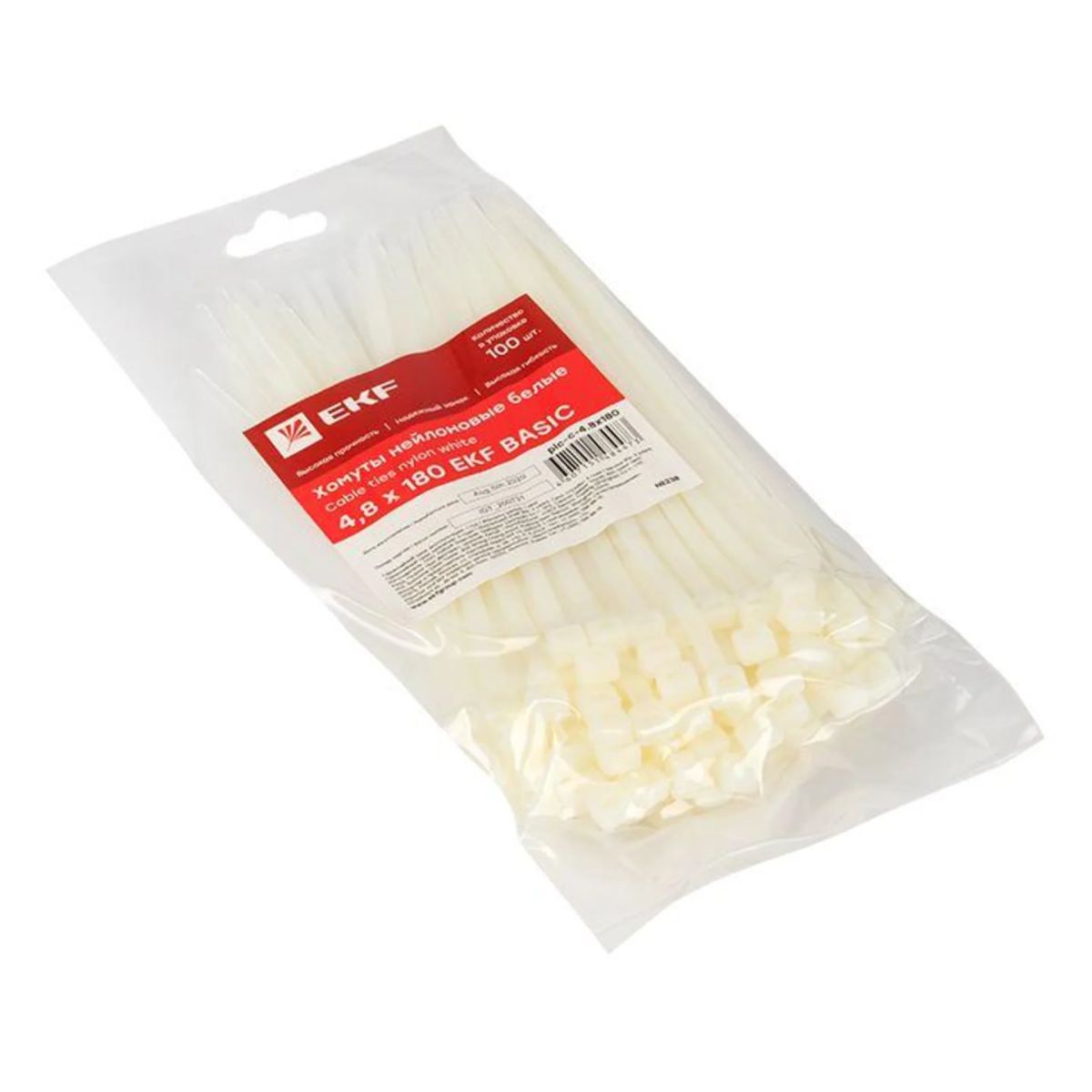 Хомут кабельный 4.8х180 нейл. бел. (уп.100шт) EKF plc-c-4.8x180