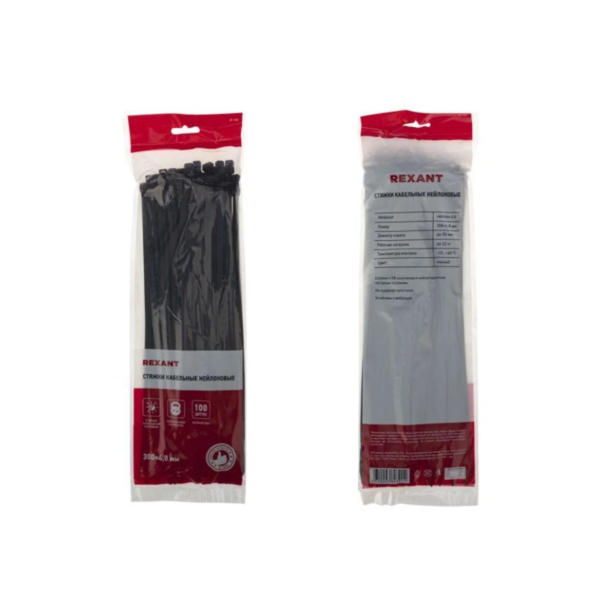 Хомут кабельный 4.8х300 нейл. черн. (уп.100шт) Rexant 07-1303