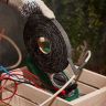 Изоляционная лента представляет собой специальный материал, предназначенный для изоляции оголенных электрических проводов в процессе монтажа электропроводки. Также данный материал обеспечивает герметичность изделий от воздействия влаги и солнечного света. Конструктивно х/б изолента представляет собой прорезиненную хлопчатобумажную ленту, покрытую с одной стороны специальным клеящим составом. Обычно х/б изолента выпускается черного цвета и отличить ее можно по большему диаметру мотка (в 2-3 раза) по сравнению с ПВХ аналогом.Если сравнивать данный вид изоленты, например, с ПВХ изолентой, то х/б материал обладает одним неоспоримым преимуществом. Его можно использовать там, где существуют значительные повышения температуры. Основа ПВХ при высоких температурах просто расплавляется, а х/б прекрасно держится.Конечно, при температурах выше 100 градусов основа х/б ленты начинает выгорать и обугливаться, но так как изоляция наносится обычно в несколько слоев, она коксуется, сохраняя изоляционные свойства. В связи с этим, даже в случае подгорания контактов или места стыка проводов, изоляция которых выполнена с помощью данного вида изоляционной ленты, из-за чрезмерной нагрузки возгорания не возникает, что может спасти от пожара. Технические характеристики: Цвет: черный Материал: основа из хлопчатобумажной ткани и каучуковый клеевой слой Ширина: 15 мм Длина: 50 мТолщина: 0,35 ммВес: 500 гр.Напряжение: до 1000 В Температура использования: -30...+30 °C