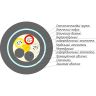 Свободное пространство внутри оптических модулей и межмодульное пространство заполнено гидрофобным гелем. Сердечник скреплен нитями. На сердечник наложена ПЭТ лента, закрепленная нитью. Поверх скрутки наложена промежуточная оболочка из полиэтилена. На промежуточную оболочку наложен армирующий повив из стеклонитей. Защитная оболочка – полиэтилен высокой плотности.