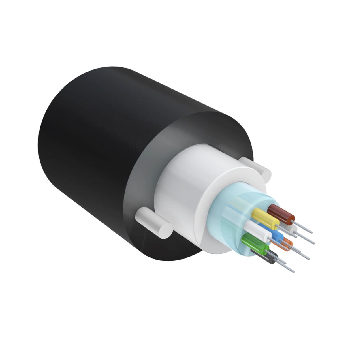 Кабель представляет собой полностью диэлектрическую конструкцию с центрально расположенным оптическим модулем. Может содержать от одного до восьми оптических волокон, соответствующих рекомендации ITU-T G.652.D (стандартное одномодовое волокно с подавленным «водяным пиком»). Для защиты волокон от воздействия водорода, свободное пространство внутри оптического модуля заполнено гидрофобным гелем. Устойчивость к продольным натяжениям кабелю придают два FRP-прутка (Fiber-epoxy Reinforced Plastic) диаметром 0,8мм. Наружная оболочка изготовлена из светостабилизированного MDPE (полиэтилен средней плотности).