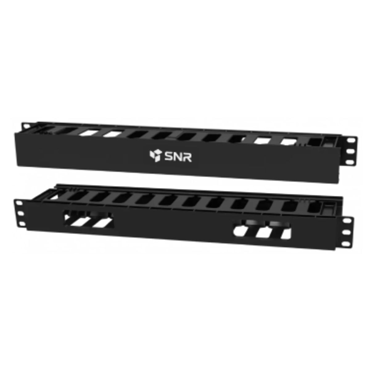 SNR-FB-ORG-3 – горизонтальный кабельный органайзер высотой в 1U, предназначенный для установки в 19-дюймовые шкафы/стойки. Органайзер выполнен из качественного пластика толщиной 2,5 мм, состоит из основного корпуса и съемной крышки, которая имеет оригинальный механизм фиксации.