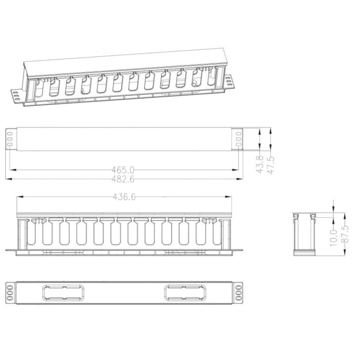 Кабельный органайзер пластиковый, 1U