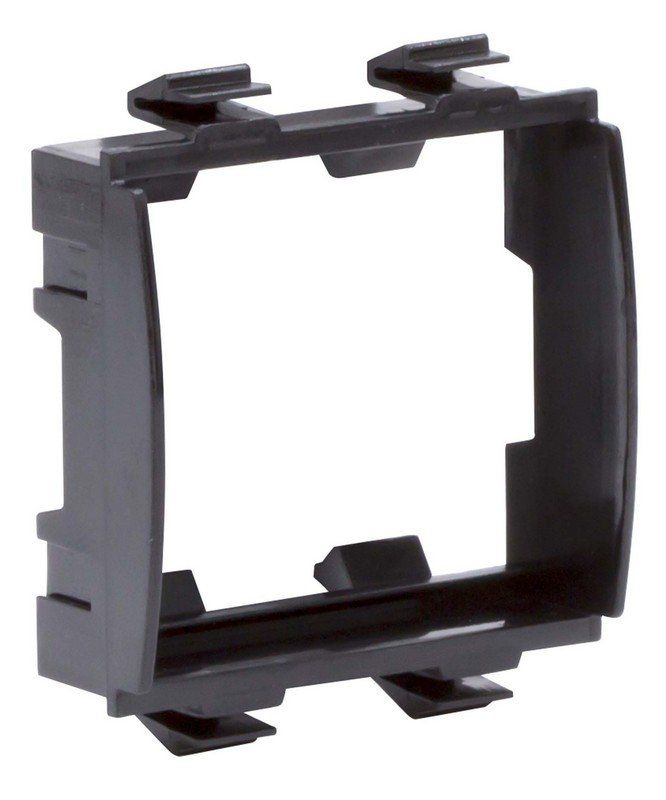 Каркас на 2 модуля для монтажа электроустановочных изделий "Viva". Назначение: монтаж электроустановочных изделий в пластиковые короба "In-liner Front", напольную башенку BUS, алюминиевые короба и колонны "In-liner Aero". Характеристики: материал – АБС-пластик; с двух внешних сторон расположены замки, предназначенные для соединения одинаковых каркасов в ряд и для использования под одной сплошной рамкой. Каркасы для разных серий ЭУИ между собой не соединяются, но монтироваться в ряд под одной рамкой. Цвет черный