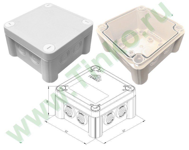 Коробка монтажная пластиковая, стойкая к УФ; без каб.вводов, имеет 7 удаляемых профилей, под каб.вводы размером М16, М20, М25; У1, IP66, t-раб. -40…+80°С, габ.размеры 122х122х66 мм , цвет серый.