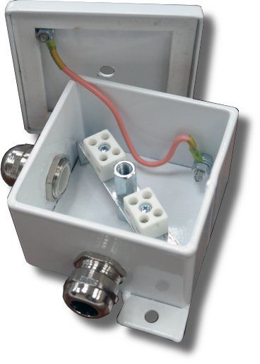 Корпус коробки целиком изготовлен из стали 2,5-3 мм. Имеет двойную защиту от коррозии ( гальваническое покрытие и покраска). Крышка прижимается к корпусу через силиконовую прокладку. Винт крепления крышки снабжен уплотняющей тарельчатой шайбой с фторопластовым покрытием. Внутри корпуса коробки установлены керамические клеммные колодки, обеспечивающие соединение "под винт", и клемма заземления. В боковых стенках устанавливаются металлические кабельные вводы. Крепление коробки к элементам конструкций рекомендуется осуществлять на приварные пластины с применением гаек и винтов или с помощью саморезов и металлических дюбелей.