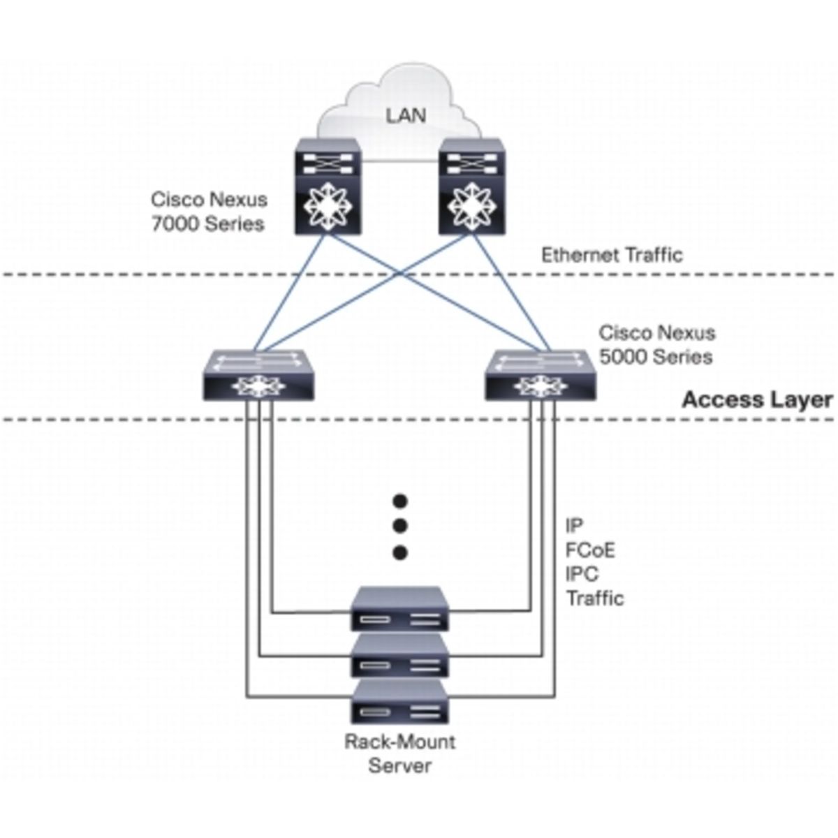 Коммутаторы Cisco Nexus 5548, разработаные в конфигурации с высокой плотностью портов, производительностью, охлаждением спереди назад и расположением портом на задней стороне, идеально подходят для агрегации большого числа 10 Gigabit Ethernet соединений от серверов в меньшее число аплинков до агрегирующих коммутаторов. Плотность портов коммутатора позволяет каждому коммутатору подключать целую стойку или соседние стойки используя SFP+ медные кабели. Коммутаторы Cisco Nexus 5548 можно купить с Ethernet возможностями, что позволяет департаменту ИТ устанавливать их параллельно существующим Fibre Channel сетям хранения. Вместо использования множества Gigabit Ethernet соединений серверов к LAN, приложениям мобильности виртуальных машин, iSCSI для доступа к сетям хранения, заказчик может объединить весь трафик в консолидированную сеть 10 Gigabit Ethernet, без потерь, с низкой задержкой.