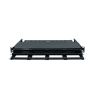 В эргономичном 1U корпусе размещены 3 выдвижных полки, в каждую из которых устанавливается до 4 распределительных кассет. Выдвижной механизм существенно упрощает процесс монтажа и обслуживания.