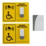 В комплект входят: 2 влагозащищенные кнопки вызова, приёмник и 2 информационные таблички для инвалидов со шрифтом Брайля.