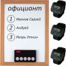 Комплект включает в себя: влагозащищенную кнопку вызова iBells 350, 3 наручных пейджера официанта iBells 203 и маркерную доску.