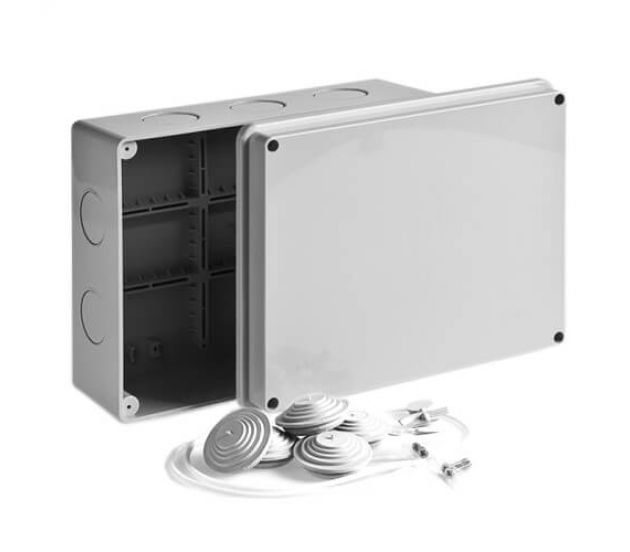 Коробка ответвительная без гермовводов для открытой проводки, 240х195х90мм, степень защиты IP55, цвет серый