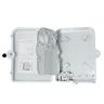 Конструкция оптического бокса SNR-FTTH-FDB-24L допускает ввод двух линейных оптических кабелей и до 24 абонентских отводов.