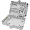 Для изготовления оптического бокса используется специальный пластик устойчивый к воздействию ультрафиолетовых лучей, позволяющий эксплуатации в условиях широкого диапазона низких и высоких температур. Герметичный корпус позволяет применять оптический бокс как в здании, так и при уличном монтаже.