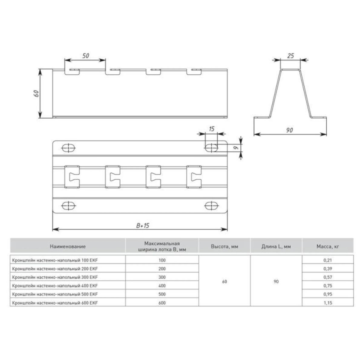 Кронштейн настенный/напольный осн.200 сталь EKF knn200