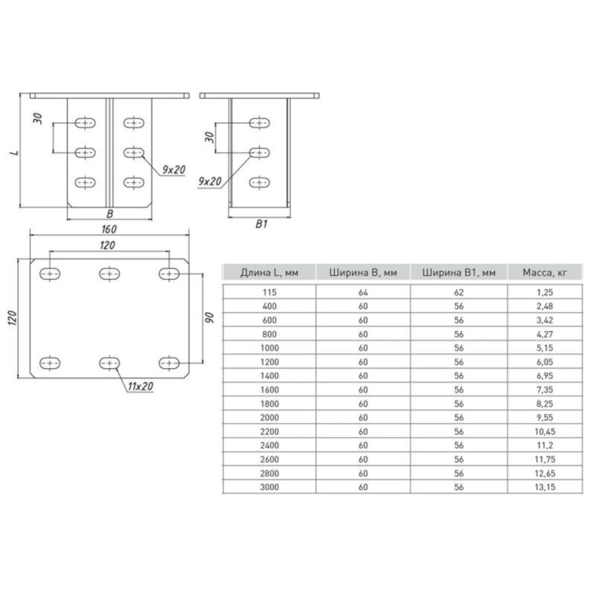 Кронштейн потолочный двойной 1800мм 2.5мм EKF kpd1800