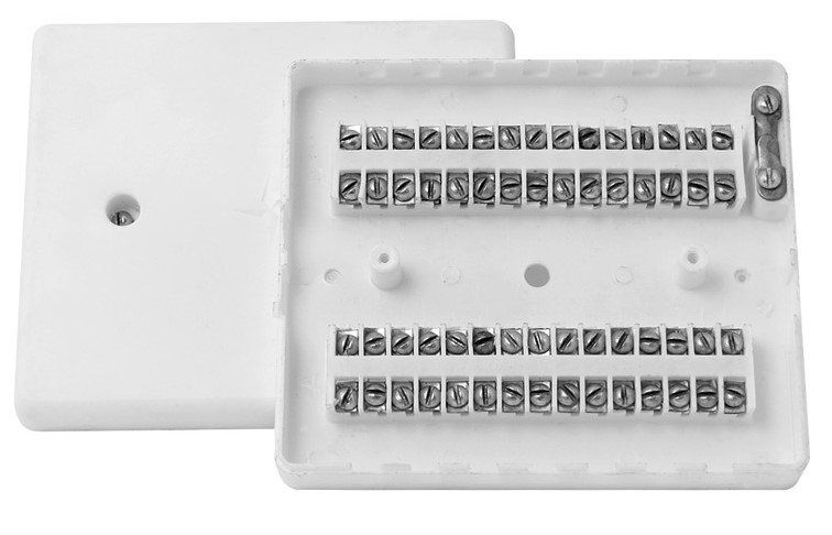 Коробка телефонная распределительная плоская 30ти-клеммная, 104х120х28 мм %Описание%