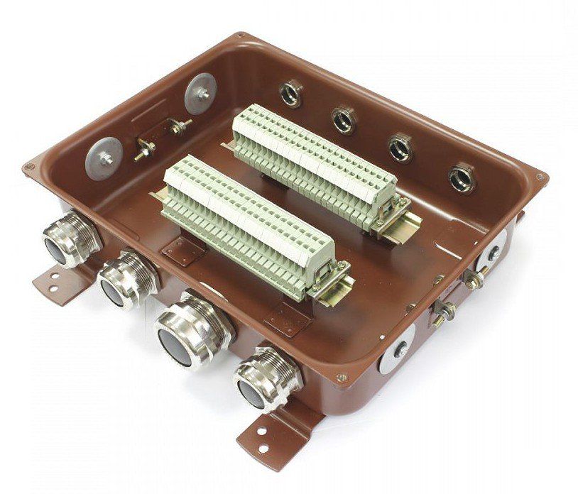 Предназначена для соединения и разветвления силовых электрических цепей и цепей КИПиА, выполняемых контрольными и силовыми кабелями с алюминиевыми или медными жилами сечением 1,5...4 кв.мм.